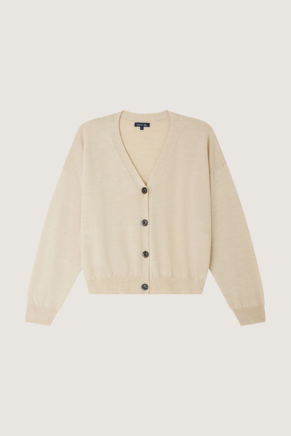 IDEM est un cardigan ample à large encolure en V. Il est tricoté dans une laine mérinos fine à porter à même la peau ou en twinset avec le pull ACE. Des finitions bord-côtes resserrent le bas de corps et les manches. Les épaules tombantes et les fentes aux côtés apportent une touche moderne à ce gilet faussement classique.