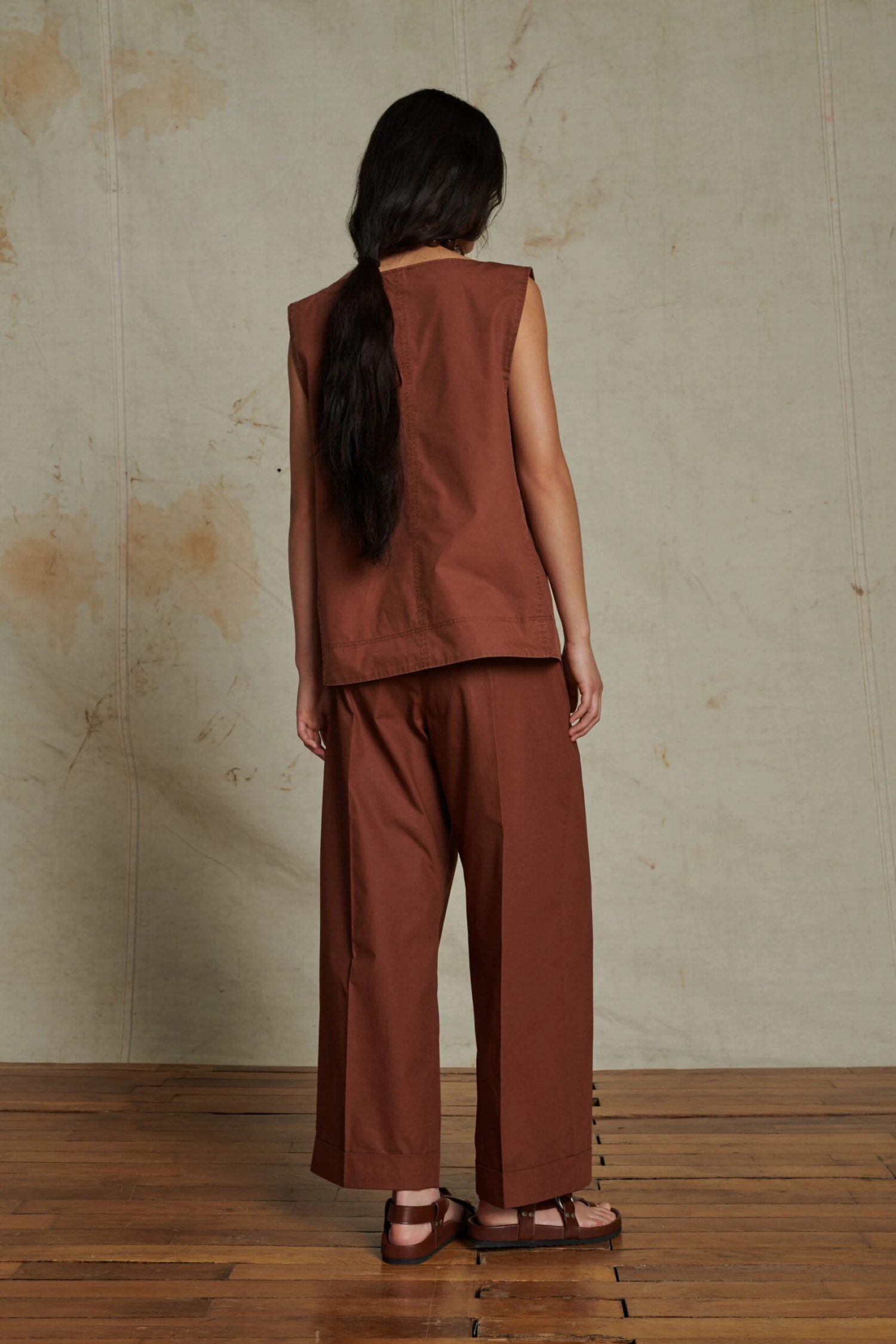 AARON est un top aux lignes épurées soulignées par un jeu de surpiqûres. L’emmanchure carrée et les fentes aux côtés ajoutent à son volume trapèze. La popeline de coton, légère et fraiche, est idéale pour l’été. A associer au pantalon WATSON pour constituer un total look d’été monochrome.