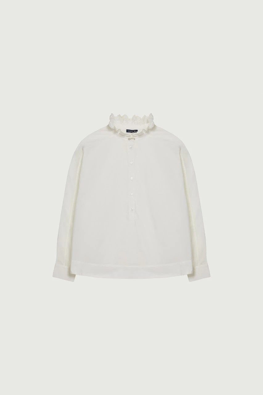 Chemise en popeline de coton blanche brodée