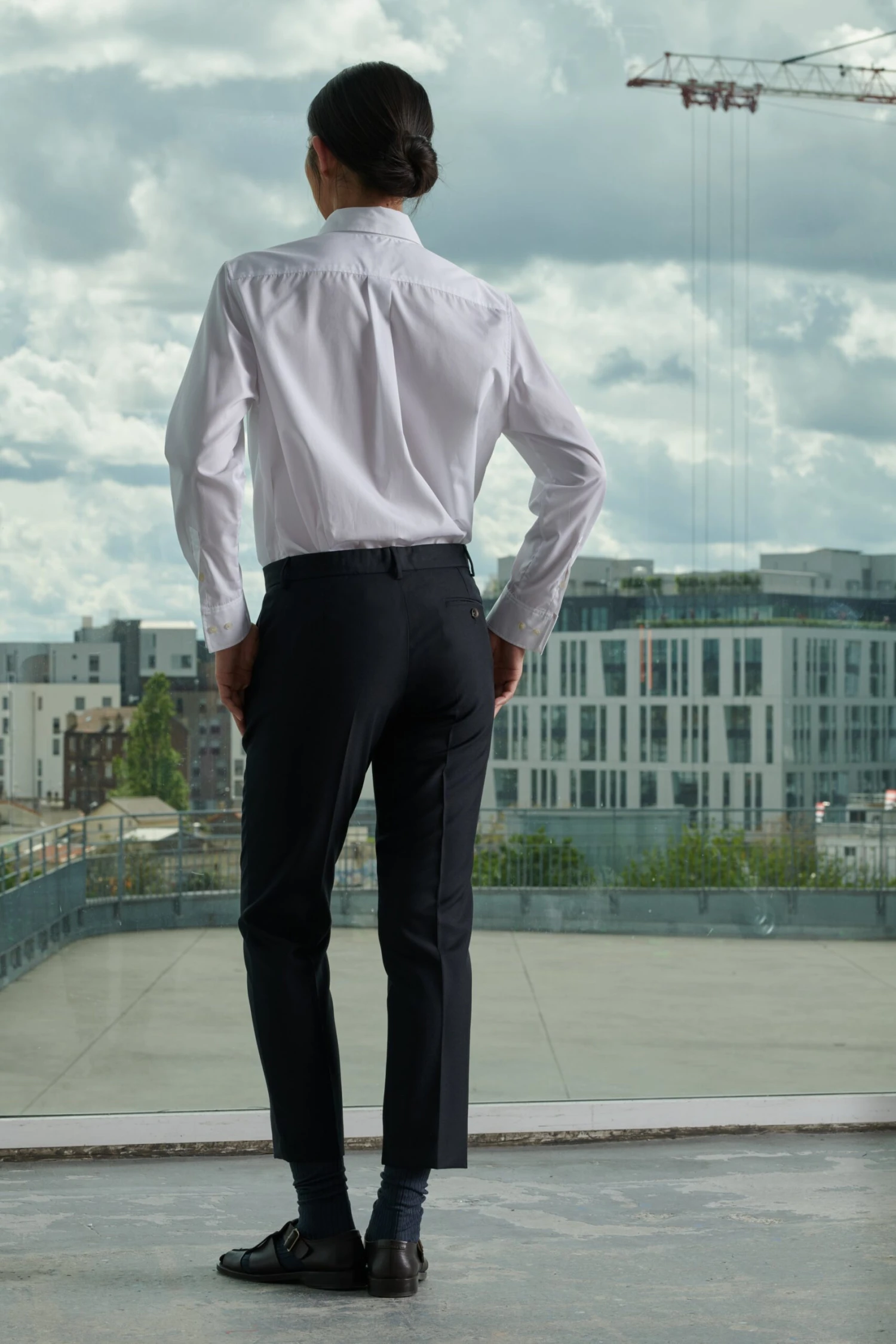 Saphir est une chemise classique d’homme, facile à associer et à juxtaposer à d’autres pièces. Elle est oversize et se porte aussi bien sur un jean qu’une jupe longue.