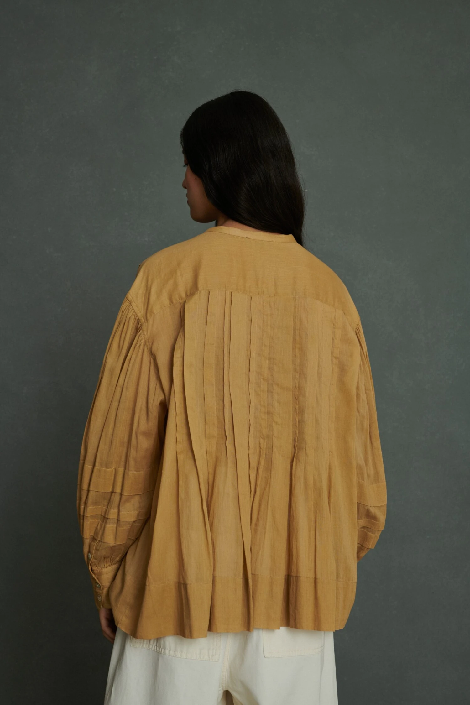 – Jeu de plis plats et de pinces devant, au dos et aux manches