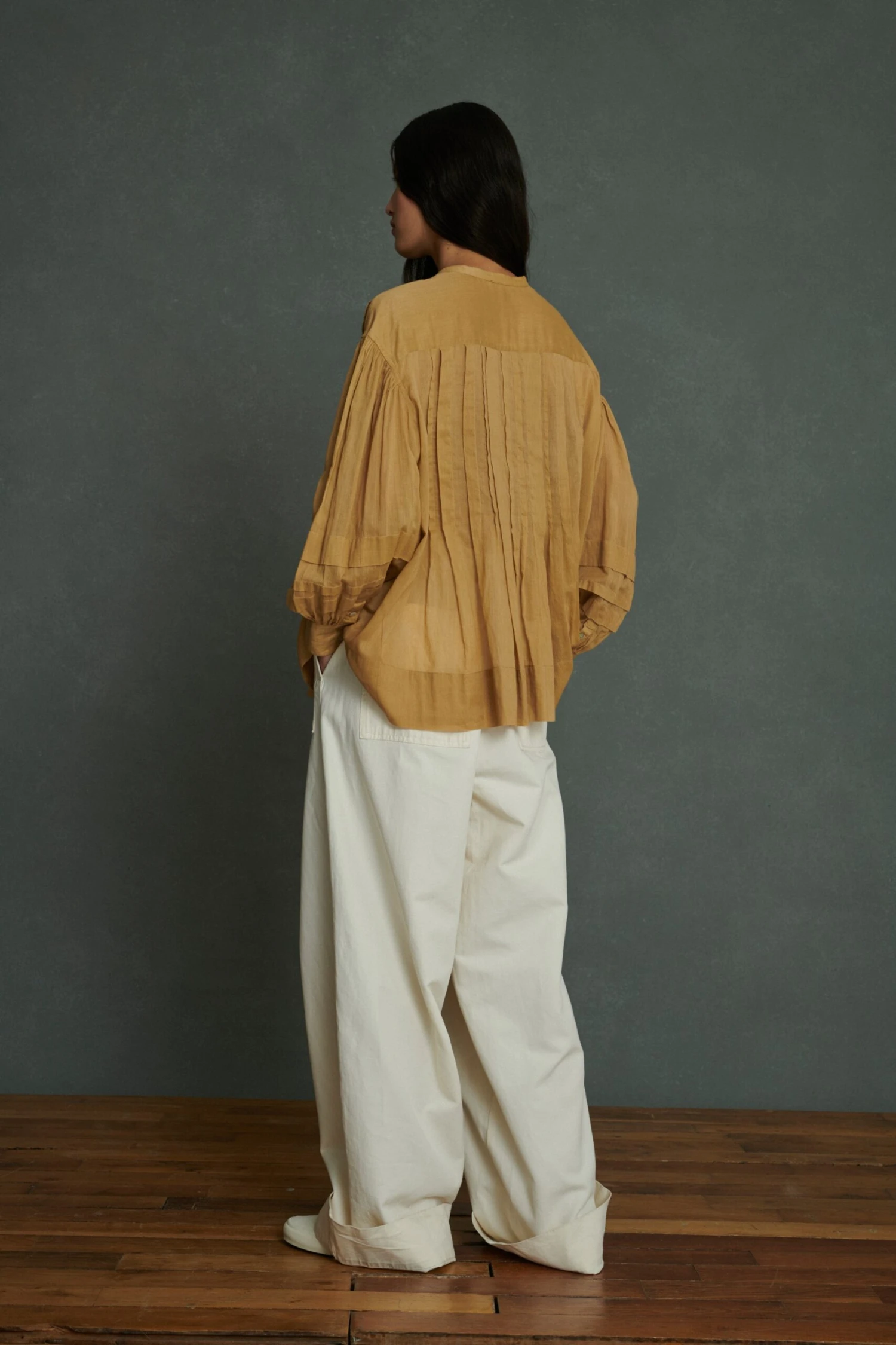 TRIPOLI est une réinterprétation des blouses romantiques : sans broderie ni feston, sa délicatesse tient par un jeu de plis plats (devant, au dos, sur les manches et aux poignets) qui témoigne du savoir-faire de notre Studio. Son volume est volontairement ample. Le voile de coton apporte transparence et légèreté à cette blouse d’été.