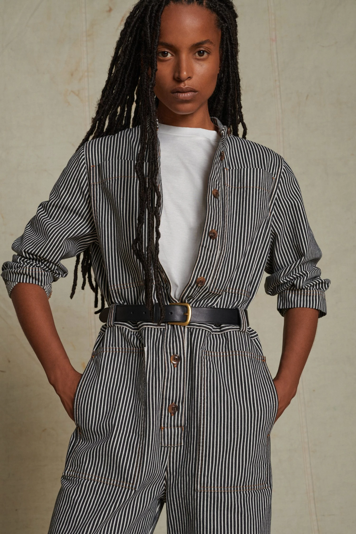 Combinaison-pantalon en toile de denim à rayures noires et blanches