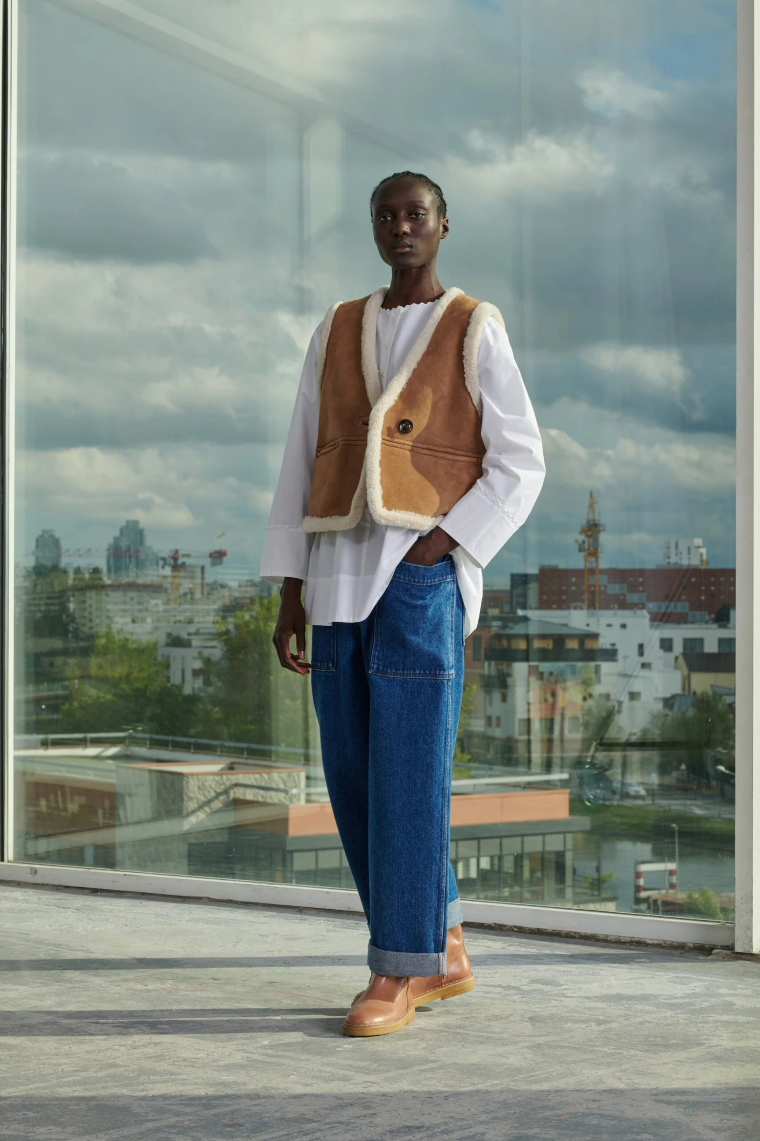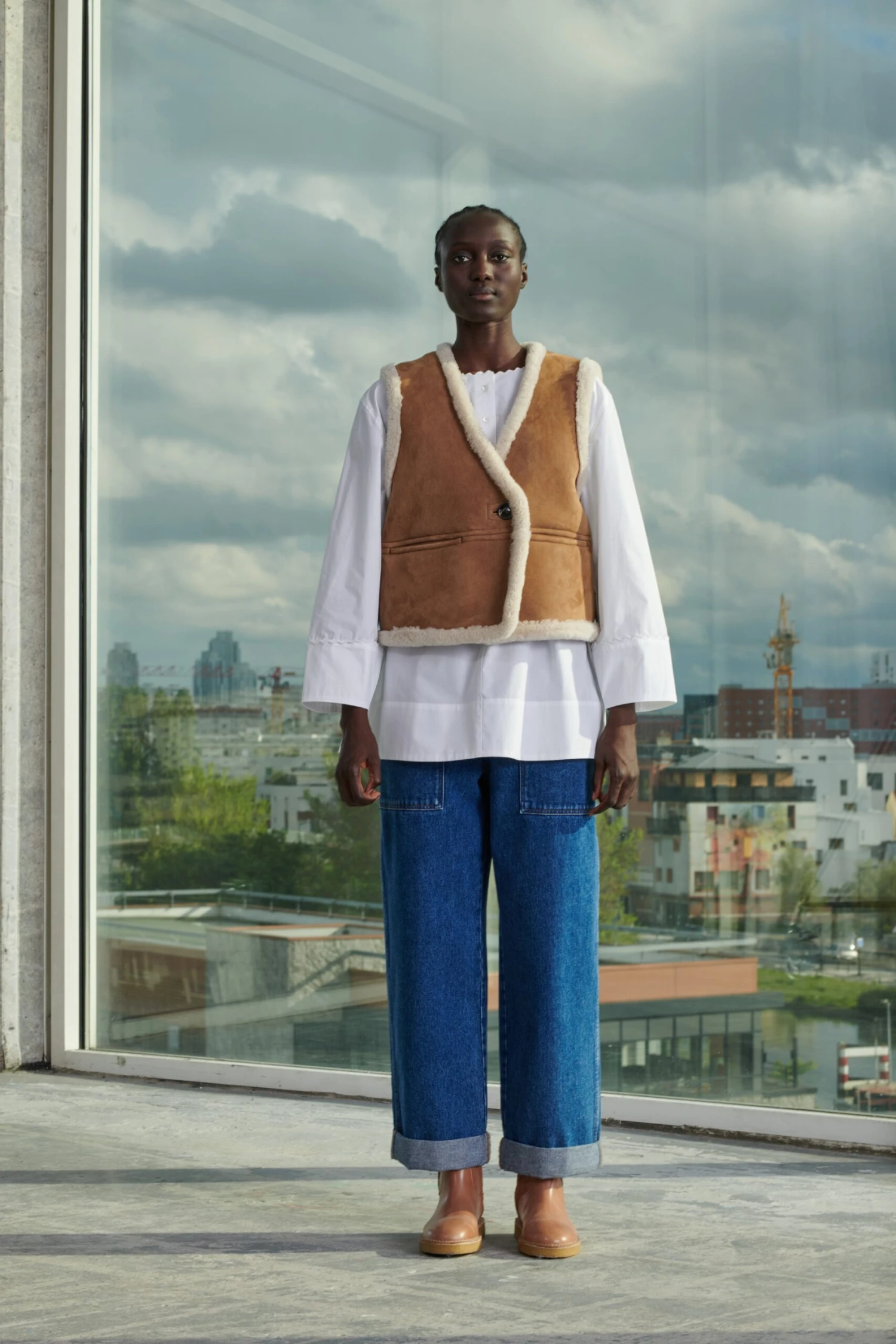 Gilet sans manches en peau lainée naturelle