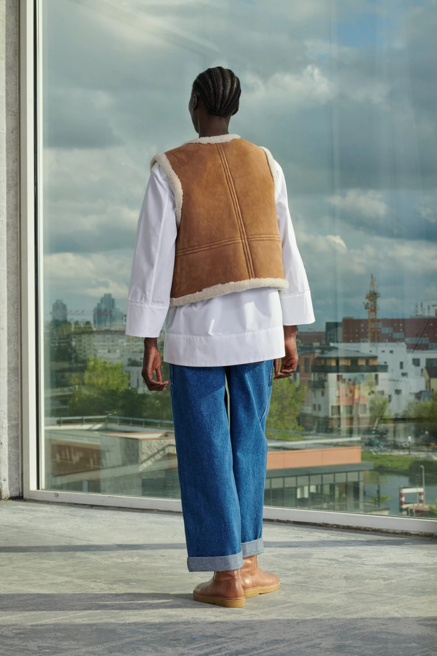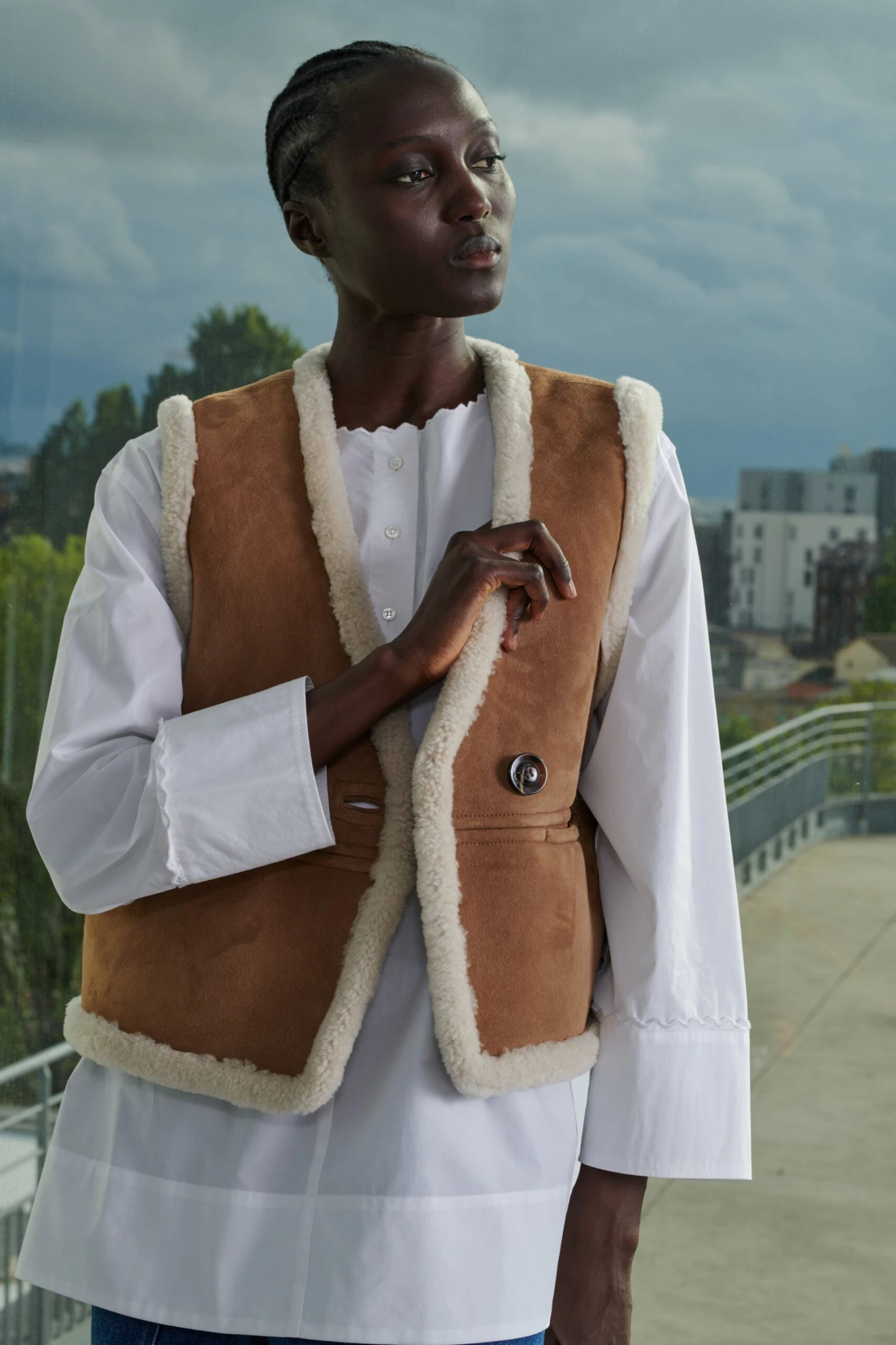 Gilet en peau lainée sans manches naturelle