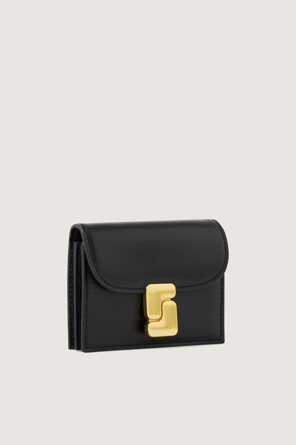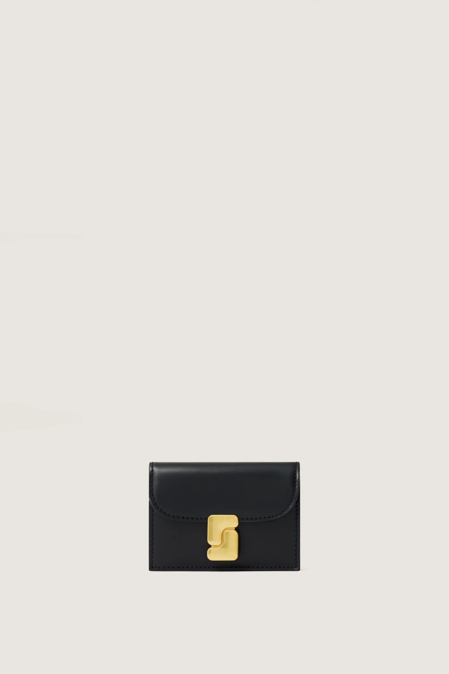 Porte-cartes à rabat monogramme « S » en cuir glacé noir
