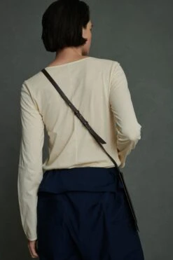 – Fond de robe nuisette contrastée couleur lie de vin, encolure structurée et bretelles fines