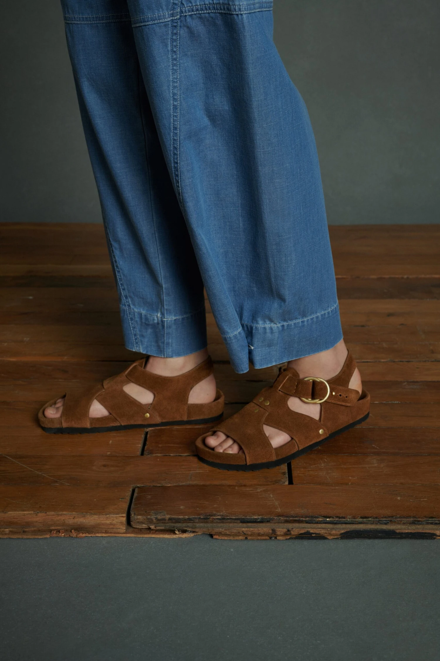 Sandales en croute de cuir couleur cannelle